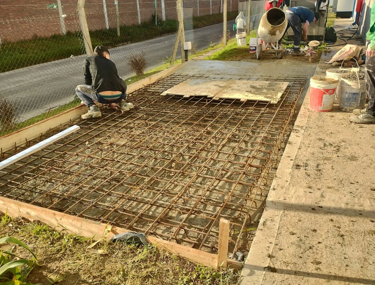 Ejecución de una platea de hormigón armado de alta resistencia, diseñada como cimentación para soportar un grupo electrógeno de 5.000 kg. El trabajo incluyó estudio de suelo, cálculo estructural y la ejecución con refuerzos de malla para garantizar estabilidad y absorción de vibraciones.