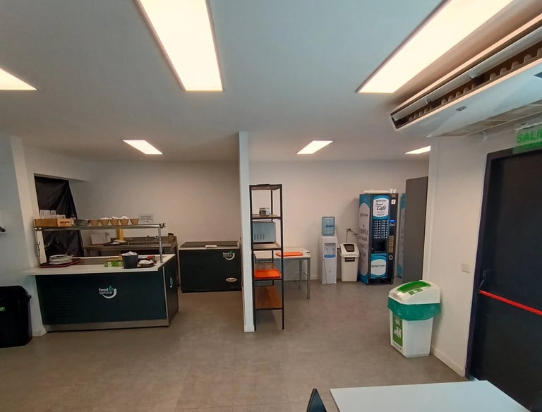 Ampliación del comedor de personal mediante la integración de una terraza contigua. Los trabajos incluyeron nivelación de piso con hormigón alivianado, estructura en Steel Frame y el acondicionamiento final con cielorraso, HVAC, iluminación y puntos eléctricos.