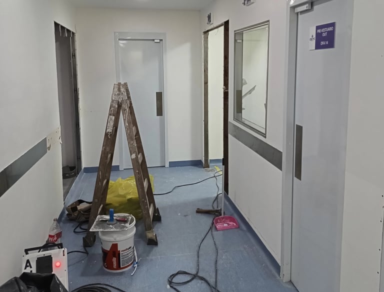 Proyecto Llave en Mano ejecutado durante parada técnica, centrado en la reestructuración y adecuación de áreas productivas críticas (Brevetti, Ampollas, Polvos y 3 Transfers). Se realizaron trabajos integrales de obra civil, acabados e instalaciones eléctricas. El alcance incluyó, crucialmente, la instalación de Sistemas HVAC para confort y para Áreas Clasificadas (Salas Limpias), garantizando el estricto cumplimiento normativo de presión y filtrado.
